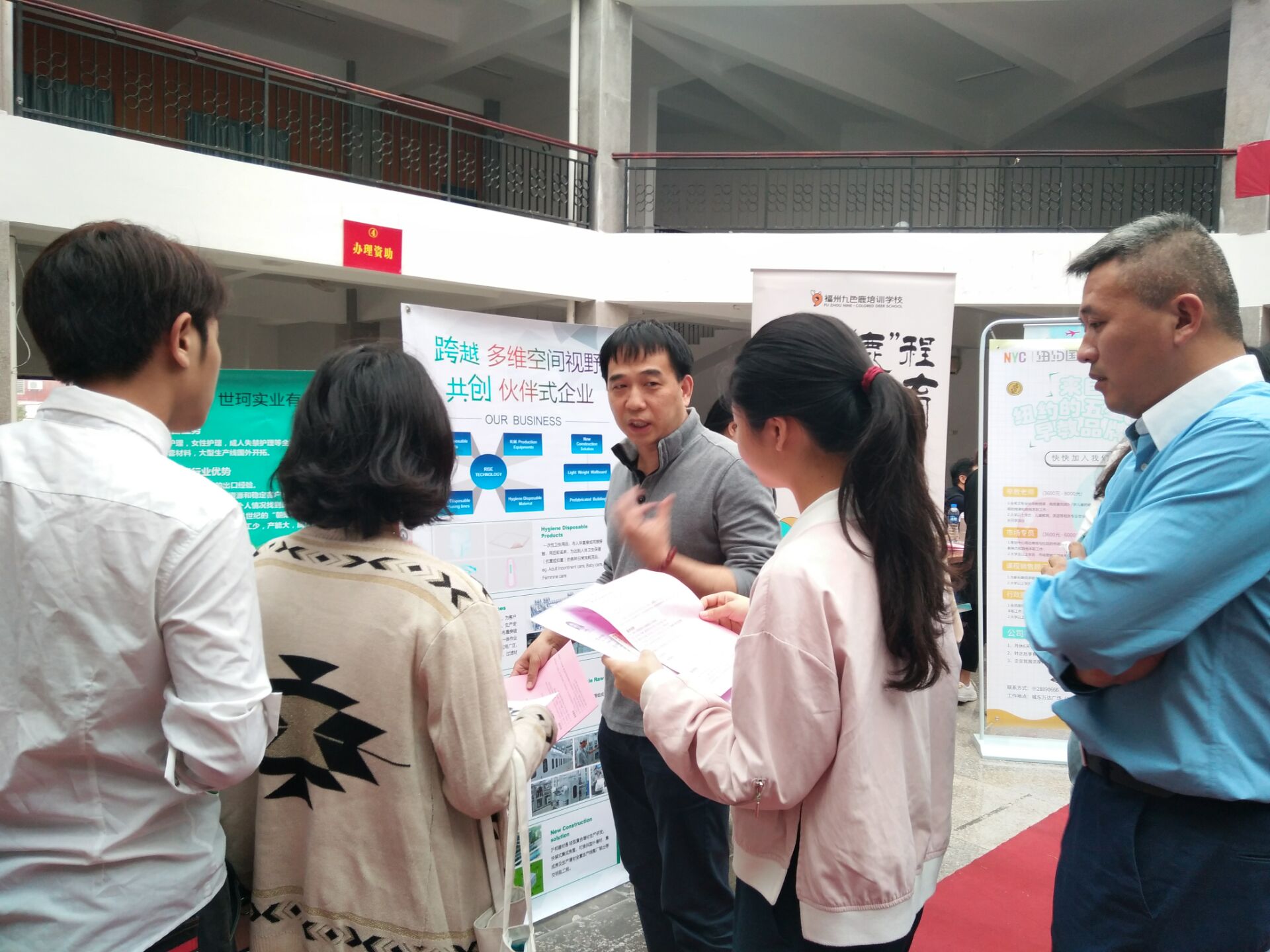 2019届毕业生聆听公司招聘负责人员讲解 泉州琪冠箱包有限公司、泉州正中服装、多丞厦门进出口公司、万峰家居用品有限公司、厦门鼎石通进出口有限公司、永进(厦门)国际物流有限公司等共17家企业到场参会,为毕业生提供百余个岗位。