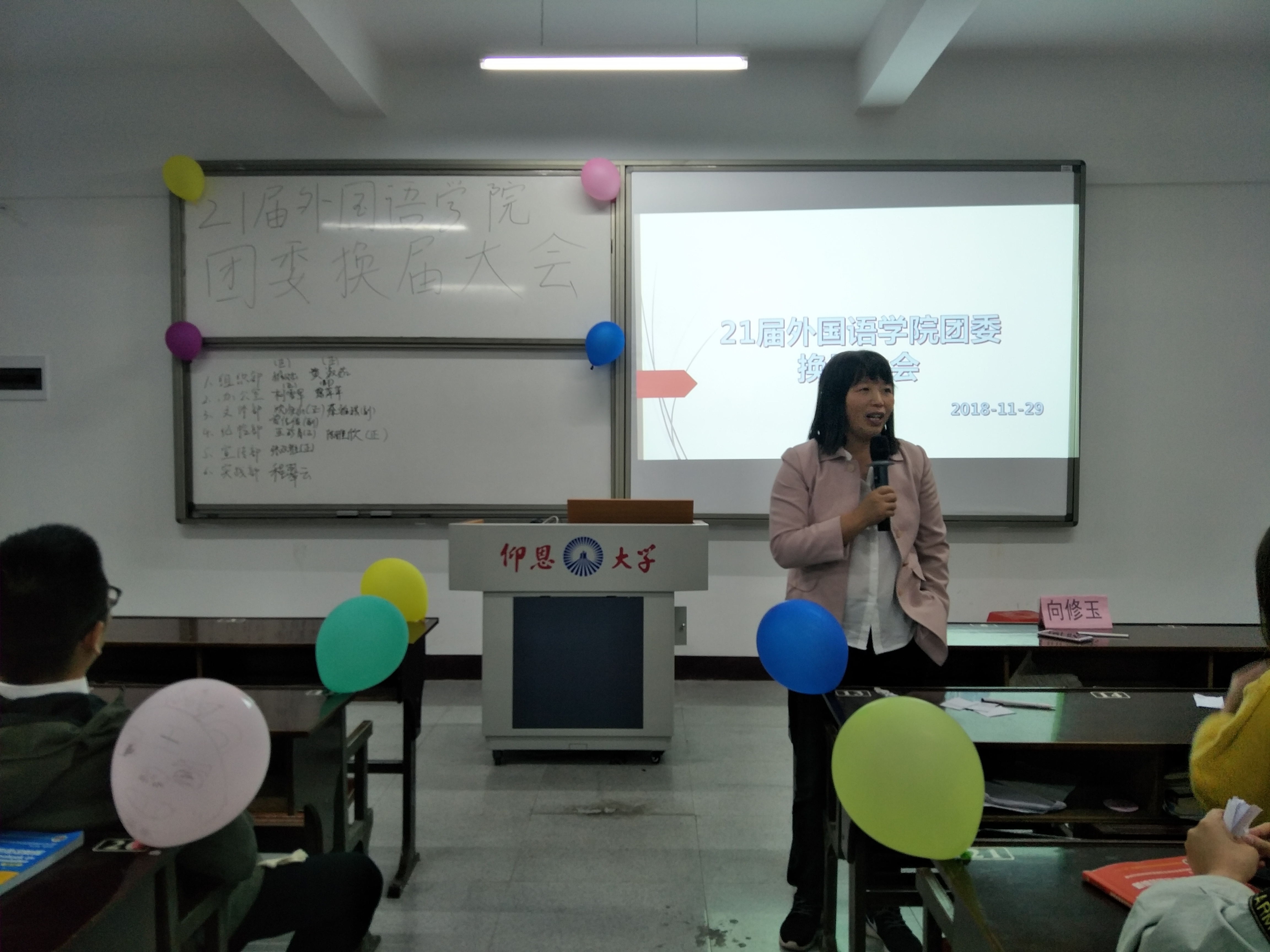 beat365在线唯一官网团委干部换届大会于2018年11月29日(周四)晚上7:00在仰恩楼D3-405召开。beat365在线唯一官网辅导员向修玉老师,院团委往届干部及应届竞选干部人员纷纷前来参加此次会议。