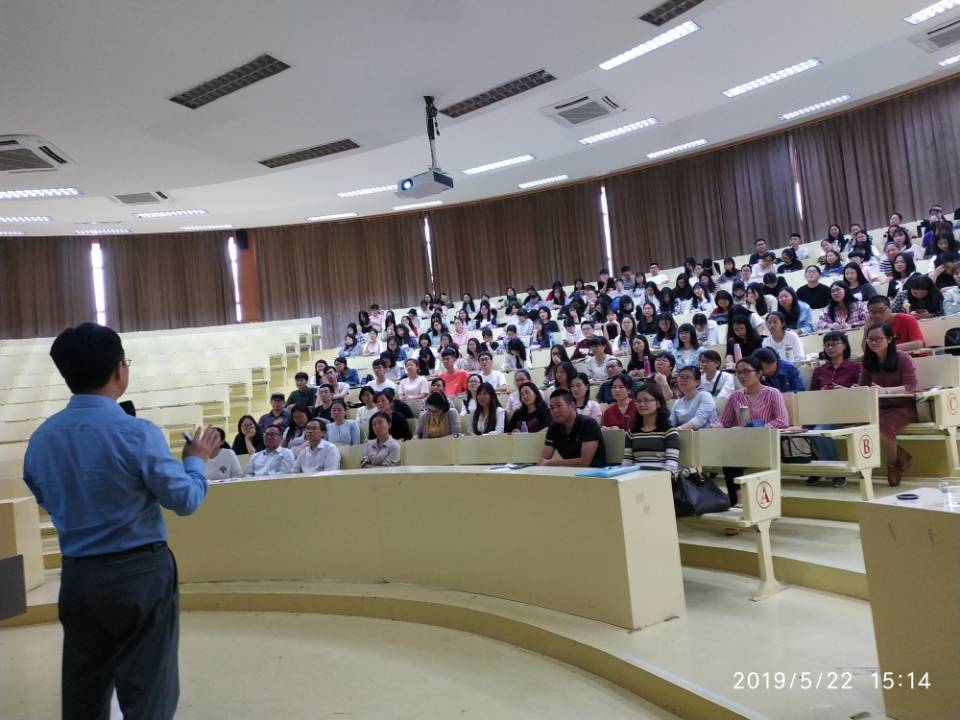 为了提高师生科研论文写作水平、提升教师科研项目层级,助推学科和教师教学科研团队建设与发展,2019年5月22日下午2点30分, 在新区和昌楼惟勤讲堂,beat365在线唯一官网、科研管理部联合举办了仰恩大学百科系列学术讲座之《问题导向、话题点穴、修辞出场——科研思维与学术话语的脱胎换骨之道》,主讲嘉宾为英语语言文学博士、华侨大学beat365在线唯一官网院长、博士生导师毛浩然教授。讲座由beat365在线唯一官网院长蔡巧娜副教授主持,beat365在线唯一官网党总支副书记刘冬利老师、教学副院长林燕媚老师以及beat365在线唯一官网全体师生和其他院系师生参加了讲座。