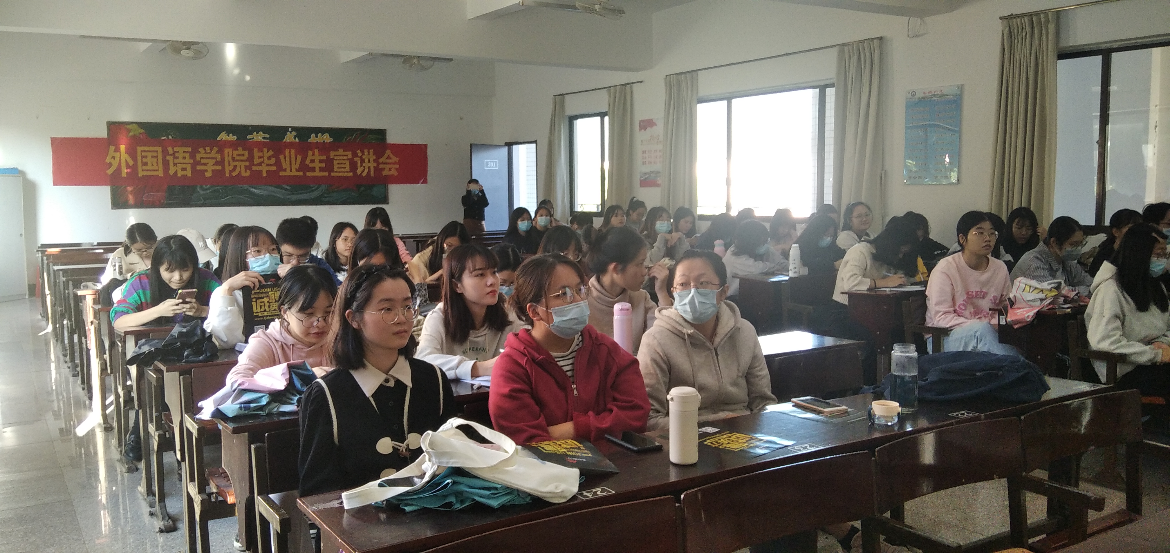 beat365在线唯一官网于11月10日下午3点在普照楼301开展了毕业生宣讲会,旨在向毕业生提供相关就业岗位信息,帮助毕业生更好的了解毕业去向。beat365在线唯一官网辅导员向修玉老师及18级英语专业的全体毕业生参加了本次宣讲会。