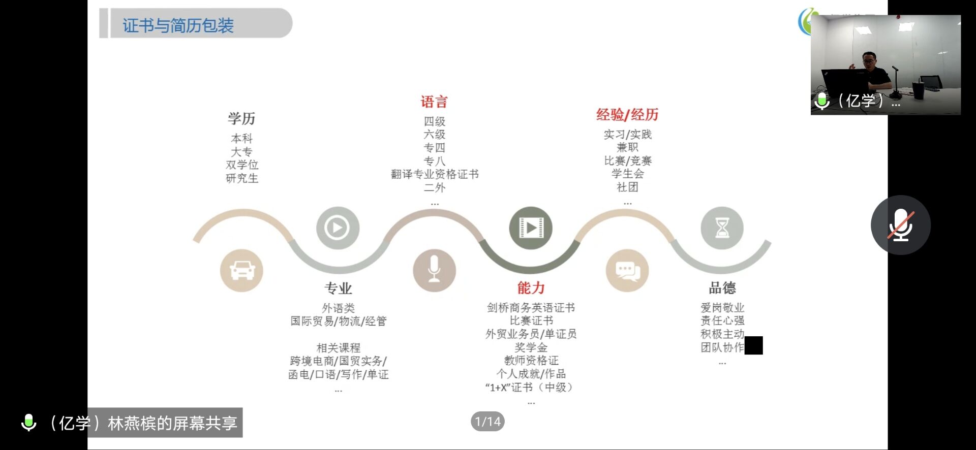 讲授证书与简历包装 林经理用自身在跨境电商行业中积累的经验和丰富的履历,给同学们讲解及分析了世界跨境电商行业前沿、中国跨境电商产业链、行业认知等知识。同时,林经理还教授同学们确定就业方向、包装证书与简历等技能。最后,林燕槟经理和刘冬利老师也表达了对同学们未来的美好期许。