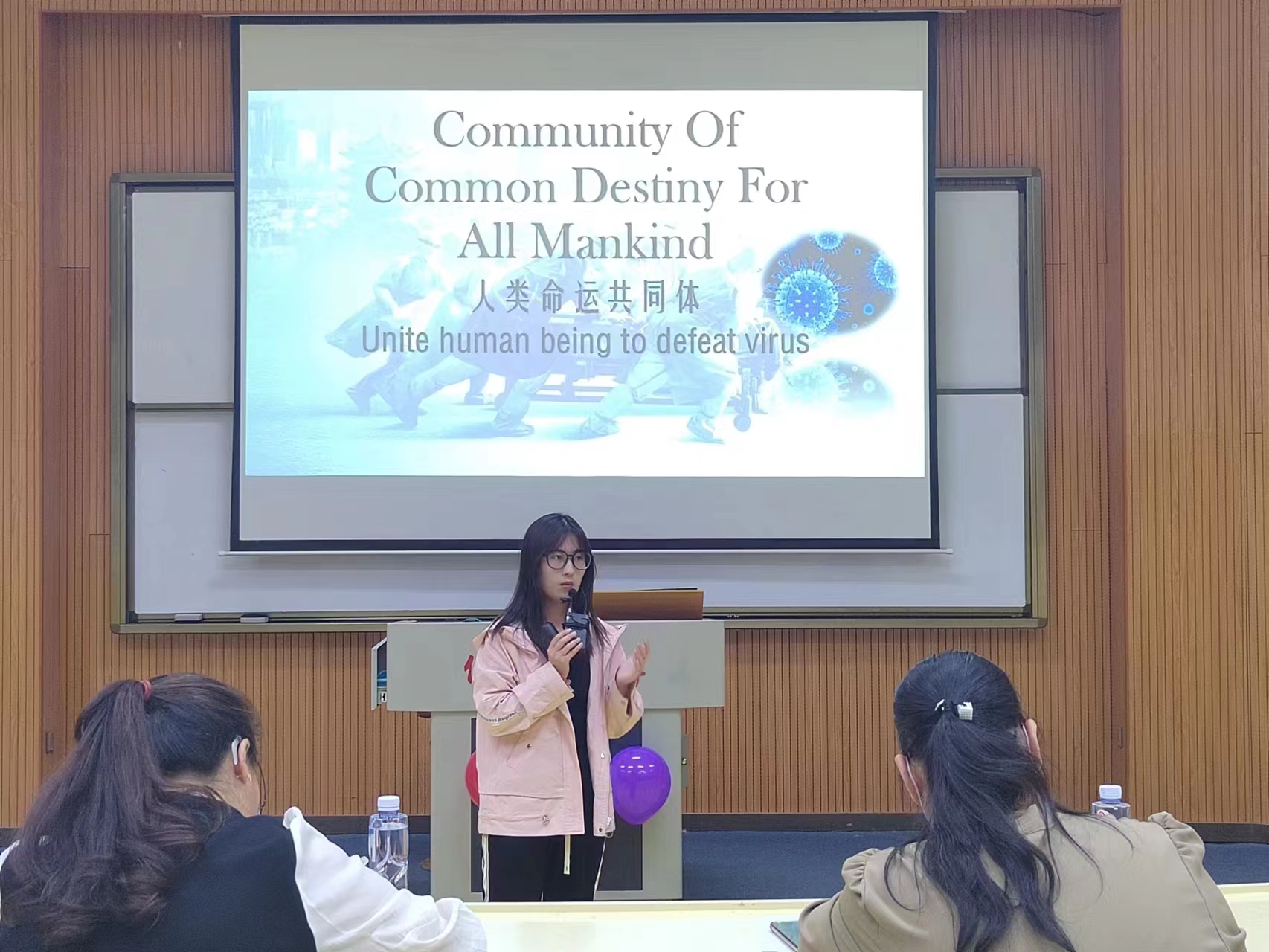 此次比赛的主题是“ China ' s Wisdom for the World ",选手们从中国在教育、和平等方面对世界的贡献展开演讲。他们聚焦中国智慧,展示解决世界问题的中国方案。定题演讲结束,选手们对现场老师的问题做出回答。面对评委老师们的提问,选手们思维敏捷、理解深刻,虽不乏紧张,却沉着应对,有条不紊地发表自己的观点。