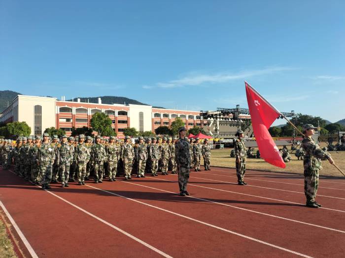 2023级商务英语1班的连小凤同学说:“在日复一日的踏步、齐步、正步中,我们走过了21天的军训。当呼号一声高过一声时,集体荣誉感油然而生。方阵的整齐划一离不开每一个人的努力付出,团结就是力量!”
