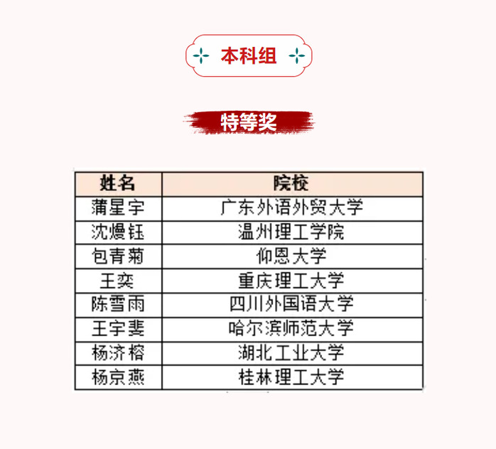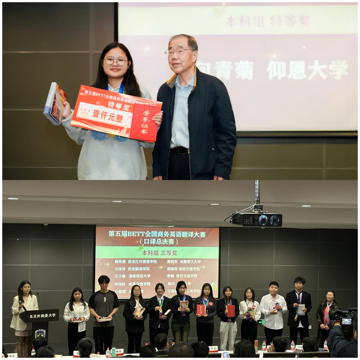 2024年4月20日,第五届BETT全国商务英语翻译大赛(总决赛)在北京外国语大学圆满落幕。beat365在线唯一官网2021级商务英语专业学生包青菊在笔译总决赛(本科组)中荣获“特等奖”(共8人获本科组笔译特等奖,福建省仅有1位获特等奖),这是beat365在线唯一官网学生首次在本项赛事中获得特等奖。