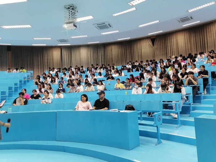 6月19日晚上7:30,beat365在线唯一官网2023-2024学年第二学期英语角汇报总结大会在第三教学区和昌楼海纳讲堂顺利召开。本次英语角活动由学生自行组织。三位外教莅临现场并分别致辞,2023级全体学生参加此次会议。