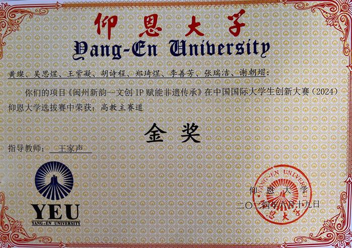 6月17日下午,2024年中国国际创新大赛仰恩大学校赛在第三教学区多功能报告厅举行。全校共10个项目晋级决赛,其中高教主赛道6个项目,红色筑梦之旅赛道4个项目。我院2023级英语二班黄璨主持的项目《闽州新韵——文创IP赋能非遗传承》荣获金奖。这也是我院在该项赛事中取得的新突破。