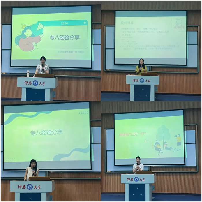 本次分享会邀请了五位优秀的毕业生代表及一位在校生作为主讲嘉宾,他们围绕考研深造、英语专业四八级备考以及大学生服务基层项目等热门话题,倾情分享了各自宝贵的备考经历与心得。活动吸引了众多2021级学生及部分2022级新生的积极参与。