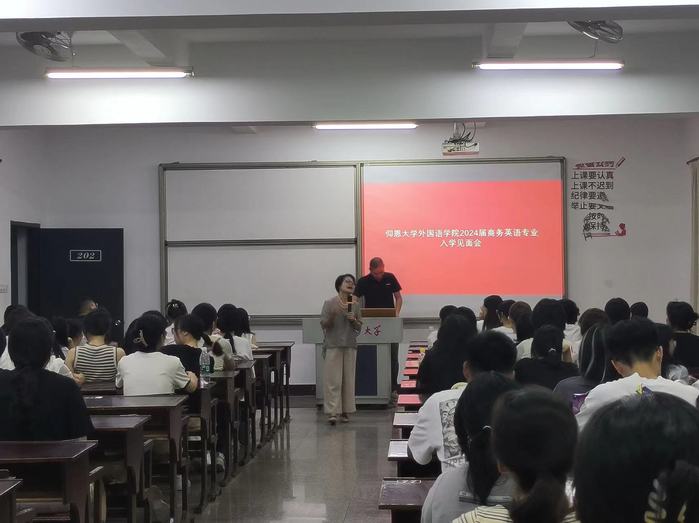 9月10日晚7点,beat365在线唯一官网于第三教学区思齐讲堂及普照楼202室召开了分别召开英语系及商务英语系的学科专业介绍会,旨在帮助2024级新生快速了解专业方向和学院团学组织的运作与活动安排。两个会场同步进行。