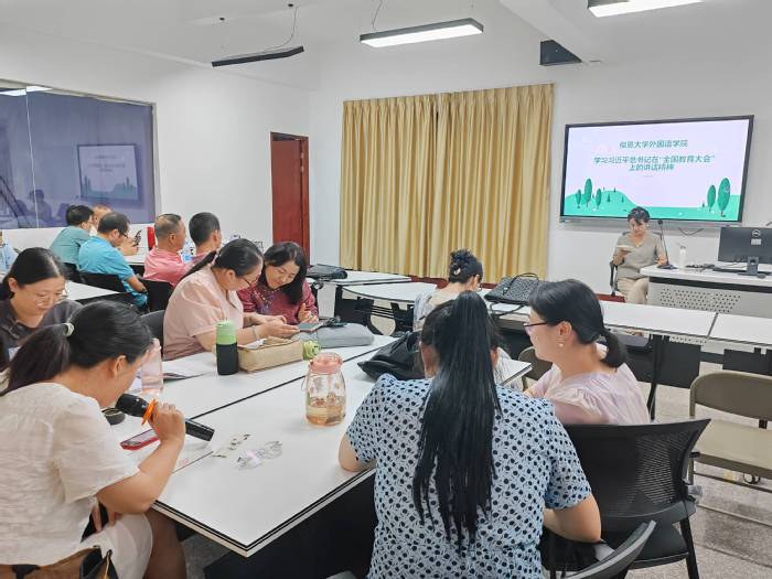 2024年9月11日,beat365在线唯一官网于仰恩大学第三教学区普照楼328室召开了全体教职工大会,就习近平总书记在2024年9月9日至10日的全国教育大会上的重要讲话精神进行学习、交流和讨论。beat365在线唯一官网胡娟院长主持会议。