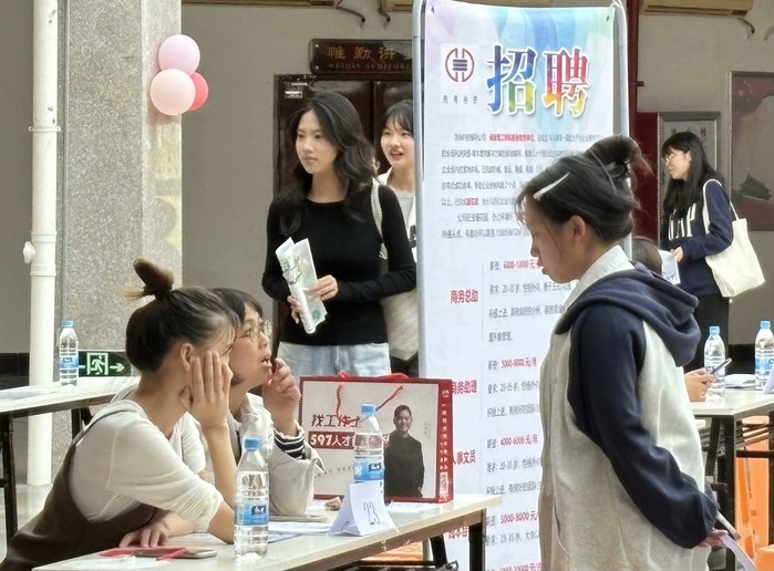 招聘会现场,企业展位一字排开,外院同学们手持精心准备的简历,穿梭于各个展位之间,积极与企业代表交流互动,详细了解岗位需求、薪资待遇、发展前景等信息,并结合自身专业特长和职业规划,勇敢地表达求职意向。同学们流利的外语表达、自信从容的姿态、对未来清晰的思考,给企业代表留下了深刻印象,展现出外院学子良好的职业素养和精神风貌。