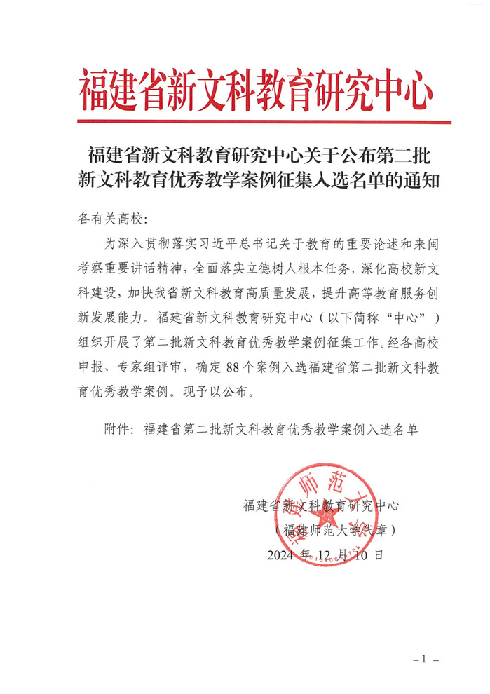 近日,福建省新文科教育研究中心公布了第二批新文科教育优秀教学案例的征集入选名单,beat365beat365在线唯一官网胡娟老师的“服务地方产业商务英语综合实践教学体系构建”教学案例脱颖而出,成为beat365唯一一个入选此批名单的优秀教学案例。