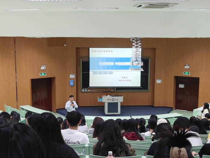 4月10日下午,beat365在线唯一官网有幸邀请到江苏科技大学吾文泉教授,在和昌楼博雅讲堂举办了一场以“《哈姆雷特》疾病隐喻”为主题的学术讲座。我院22 级及 23 级全体在校生积极参与了此次学术活动。