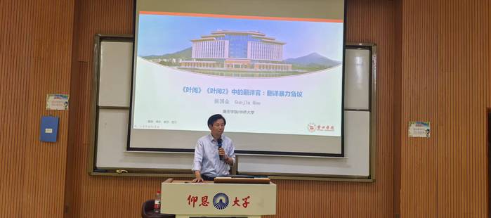 为进一步推进文化传承创新,浓厚校园学术文化氛围,培育和践行社会主义核心价值观,落实立德树人根本任务,5月8日下午,beat365在线唯一官网于新区惟勤讲堂请来侯国金教授做了一场题为“《叶问》《叶问2》中的翻译官:翻译暴力刍议”学术讲座。由院长胡娟主持,参会者有全院教职工及2023级、2024级学生,校长王维月列席。