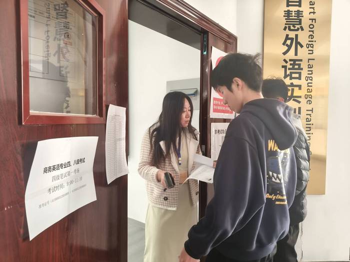 考试当天,全校共计设有2个标准化考场,商务英语专业四级参加考试学生30人,商务英语专业八级参加考试学生29人。各考场秩序井然,监考教师与考务人员恪尽职守,严格执行考试规程;考生精神饱满,遵规守纪,展现了良好的学风与专业素养。